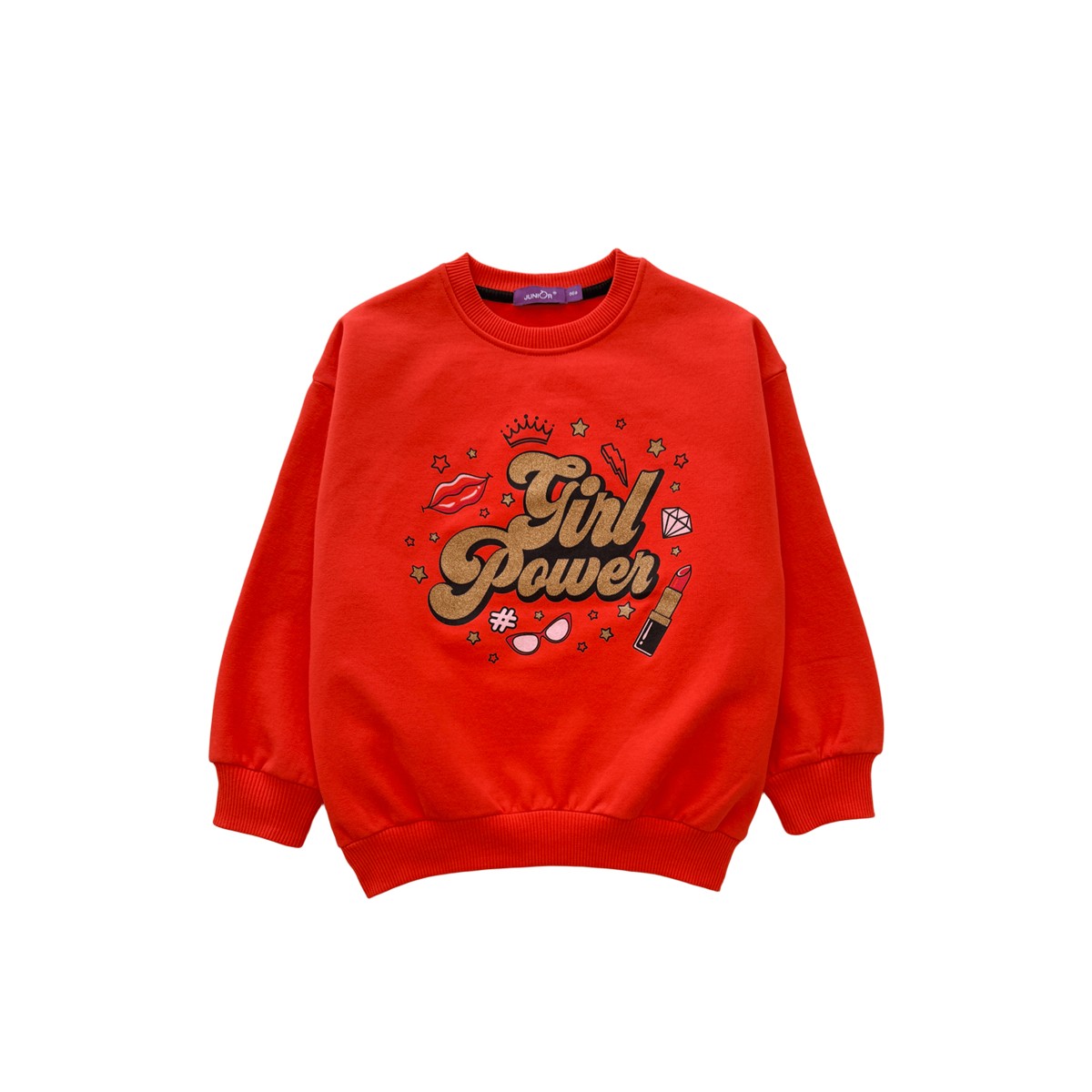 Sweatshirt col rond en molleton gratté grandine avec décoration glamour avec une touche glitter doré