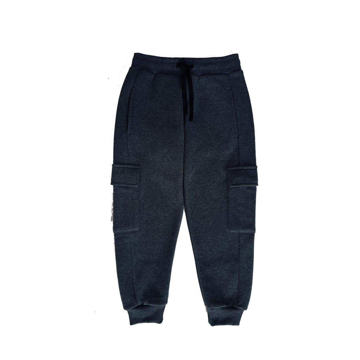 Pantalon cargo avec quatre poches en molleton gratté bleu foncé ceinture élastiquée avec cordon ajustable