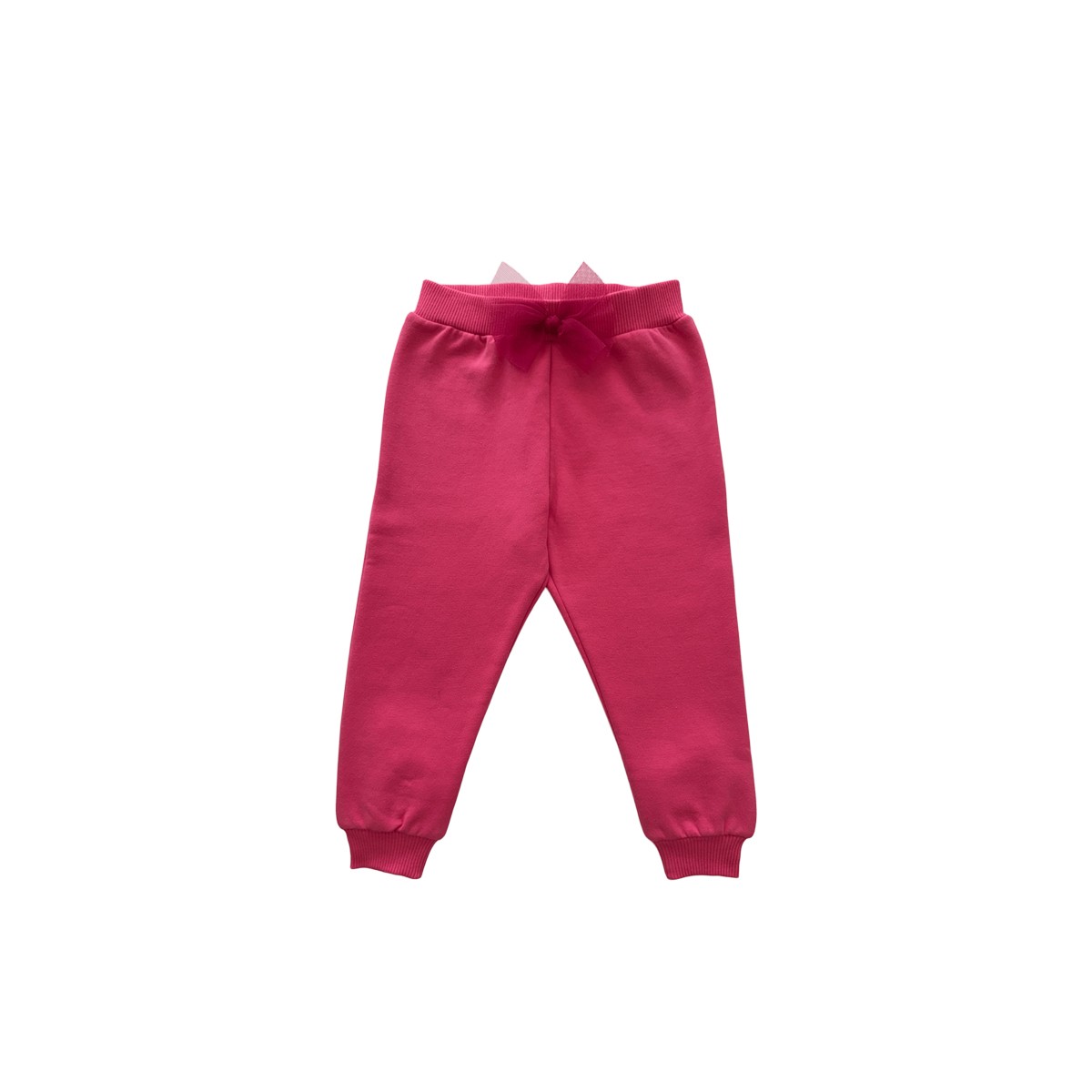 Pantalon, pour bébés et enfants, en molleton gratté coloris fushia, orné d’un nœud en tulle, doux et confortable. Il est équipé d’une ceinture élastiquée pour un maintien facile et agréable tout au long de la journée.